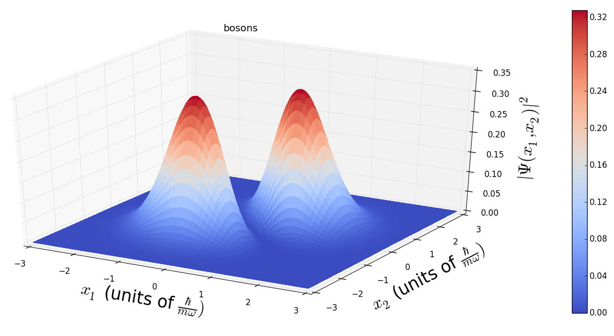 probability density plot for $\Psi(x_1,x_2) = \psi_0(x_1)\psi_1(x_2)$.