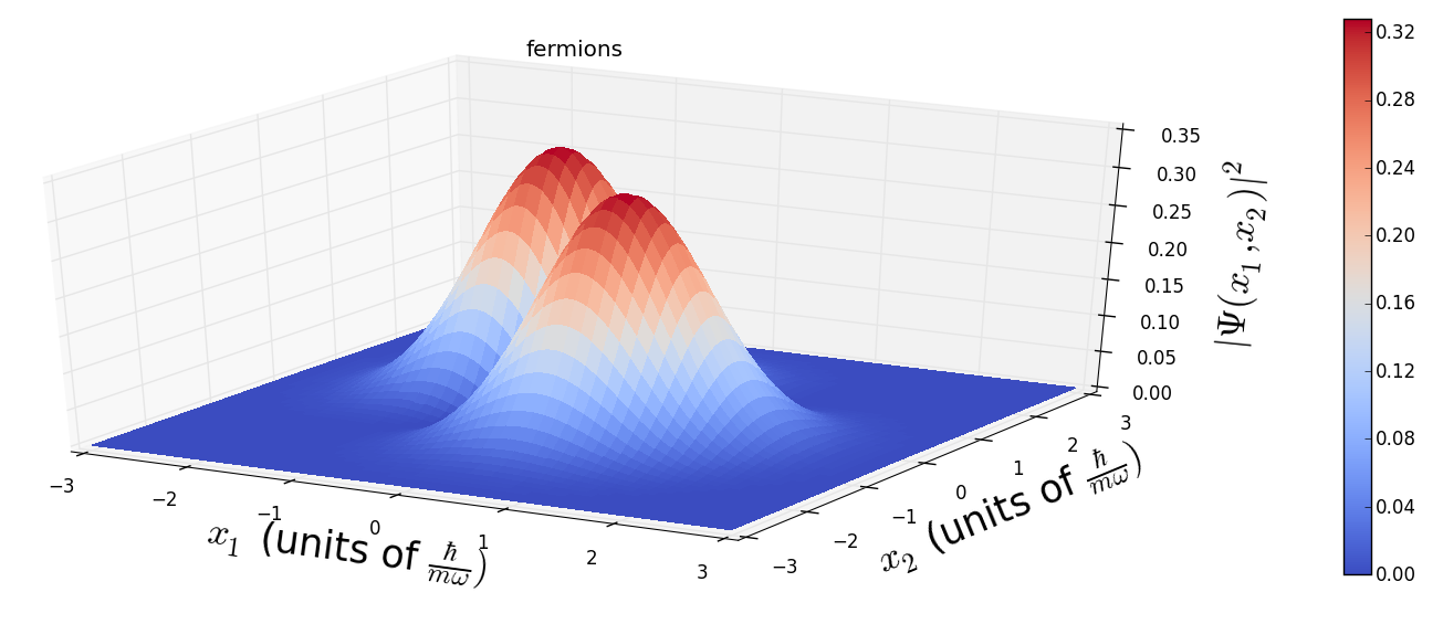 |\psi_0(x_1)\psi_1(x_2)|^2 = \frac{2}{\pi} e^{-2R^2-\frac{r^2}{2}} ( R - \frac{r}{2} )^2